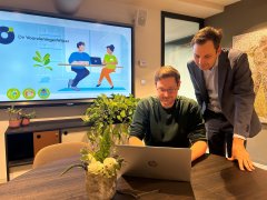 Op de foto: Wethouder Rik van den Dam (rechts) en beleidsadviseur Roel Sips (links) zijn enthousiast over de Overbetuwse VoorzieningenWijzer, die inwoners helpt meer financieel overzicht te krijgen.